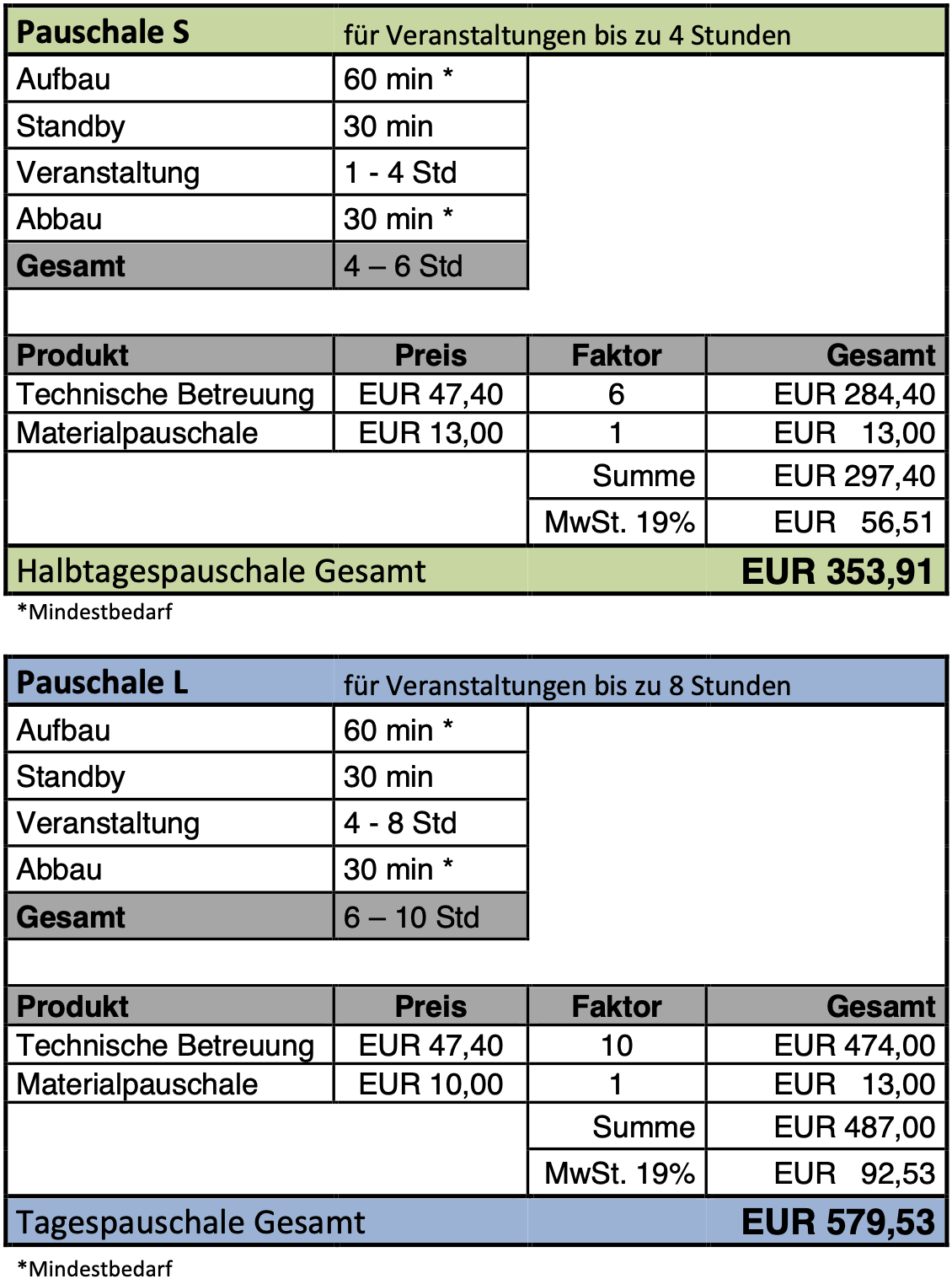 Abb.: Auszug Preisliste Technikerkosten, komplette Liste auf Anfrage