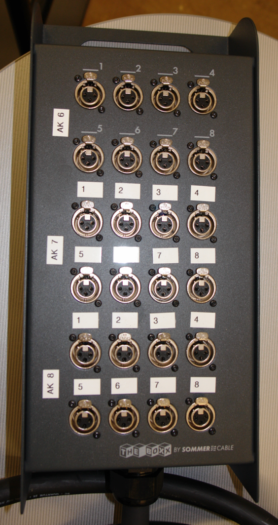 Mischpult: Yamaha TF1 + Stagebox mit 16 Inputs (teils fest belegt), Pultmikrofon (Schwanenhals), 4 x Funkmikrofon, 8 x Kabelmikrofon, Aufzeichnung, zusätzliche PA für Musikveranstaltungen